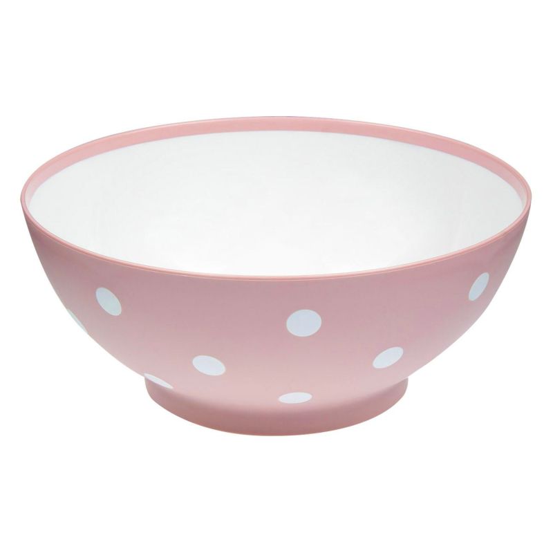 Голяма салатиера, изработена от здрава и устойчива пластмаса в цвят пепел от рози на бели точки.