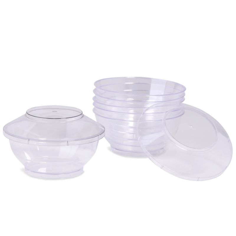 Комплект от 6 броя купи за сладолед, изработени от плътна прозрачна пластмаса с капак.