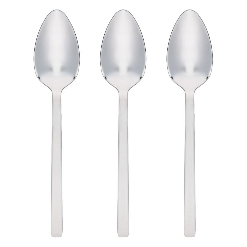 Комплект от 3 броя лъжици за супа, изработени от висококачествена неръждаема стомана в сребрист цвят, които не се износват дори след многократна употреба.