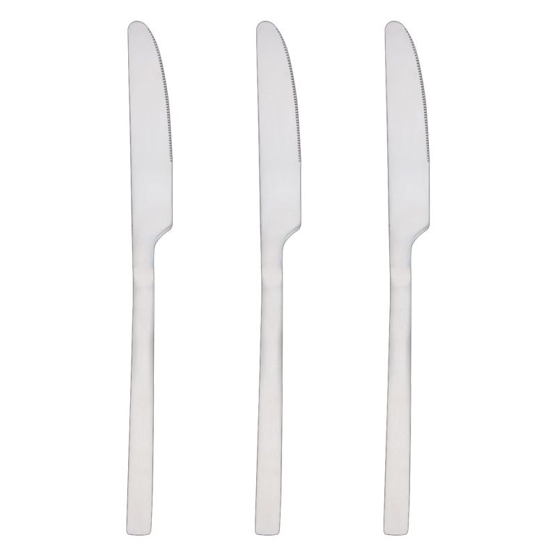 Комплект от 3 броя ножове за ястия и предястия, изработени от висококачествена неръждаема стомана в сребрист цвят, която не позволява износване.