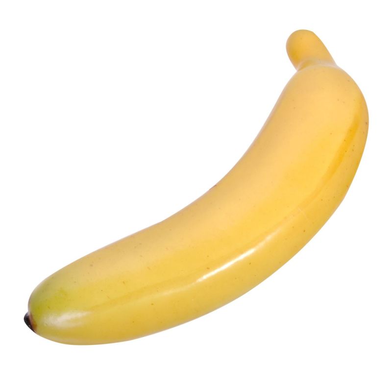 Изкуствен банан за декорация, изработен от качествена пластмаса в жълт цвят.