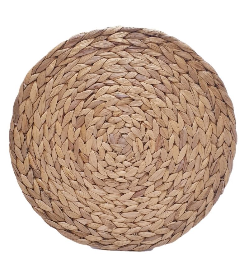 Плетена подложка за горещи съдове с кръгла форма, изработена от качествени и трайни материали в бежов цвят.