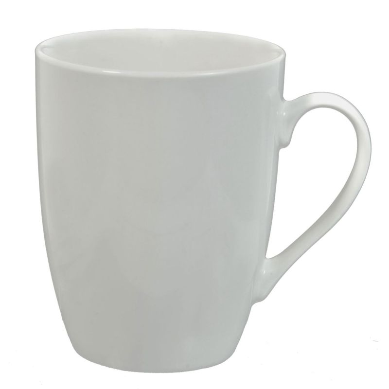 Чаша за топли напитки с овална форма, изработена от висококачествен порцелан в бял цвят с практична дръжка.