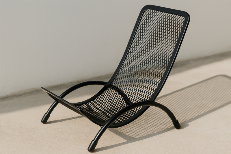 Атрактивна поставка за визитки във формата на стол, изработена от висококачествена метална сплав в черен цвят.