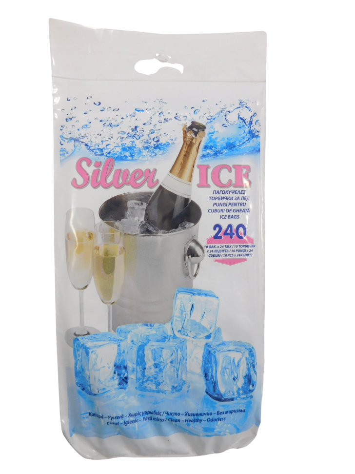 Комплект от 10 торбички за лед, всяка от които съдържа 24 кубчета.