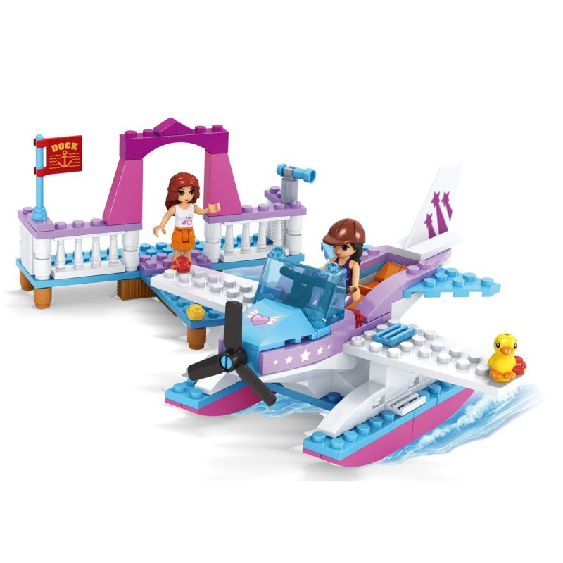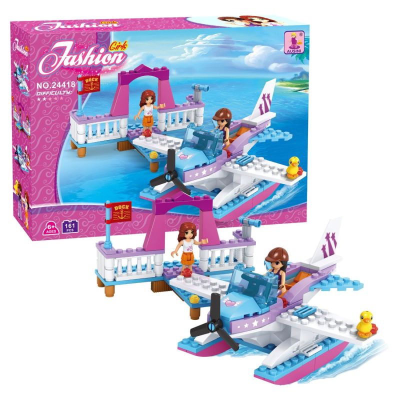 Детски конструктор за сглобяване Fashion girls - хидроплан, изработен от здрава и безвредна пластмаса в различни цветове заедно с две фигурки - на момичета.